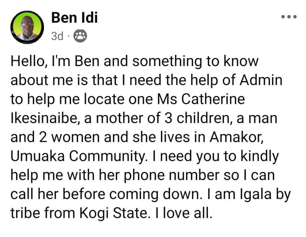 URGENT: SEARCH FOR MS. CATHERINE IKESINAIBE FROM AMAKOR, UMUAKA COMMUNITY